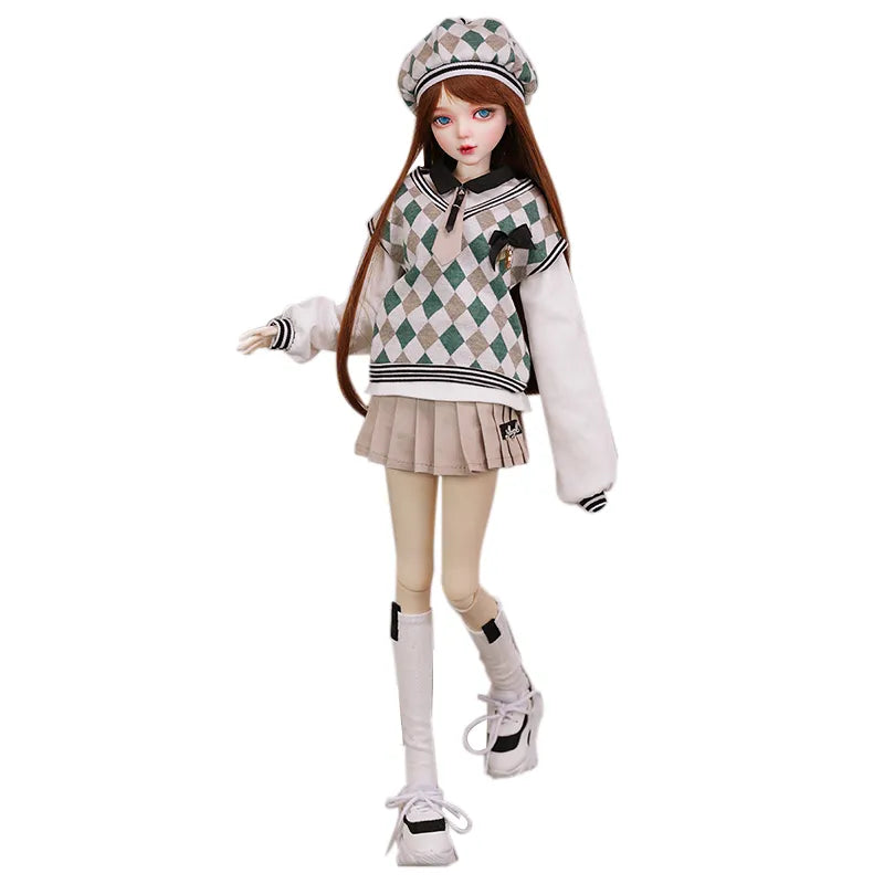 Poupée BJD 1/3 de 60 cm - Fille à la mode préppy avec maquillage de designer, comprenant cheveux, yeux et vêtements - My Charrlesop